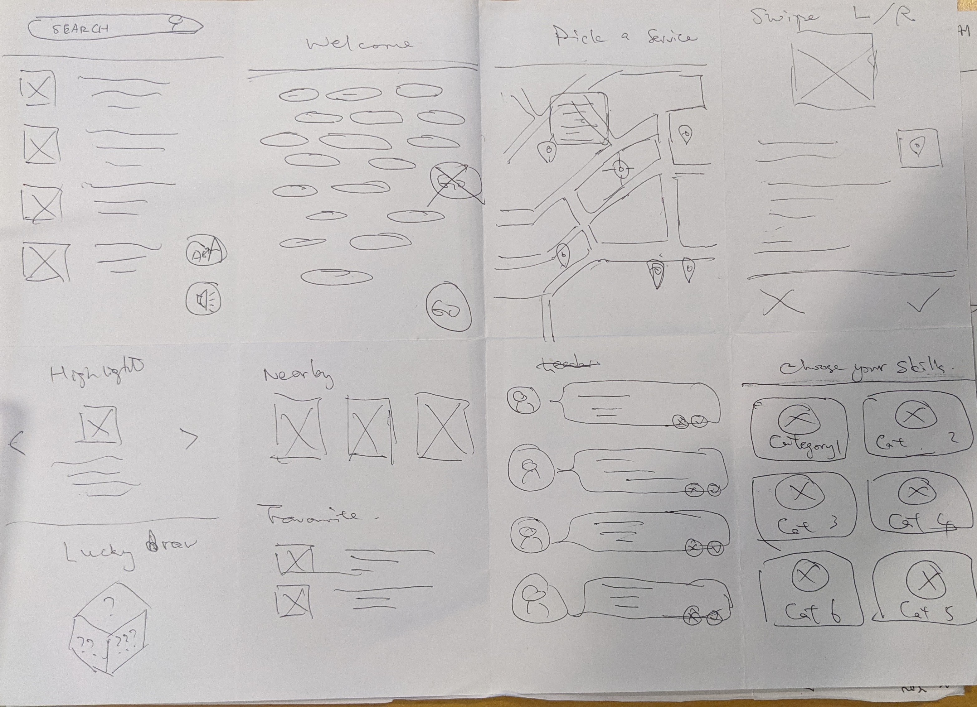 Based on the chosen sketch, we started to proceed to paper wireframes and then to digital wireframes. It was then followed bny a Lo-Fi prototype before conducting our first usability studies.