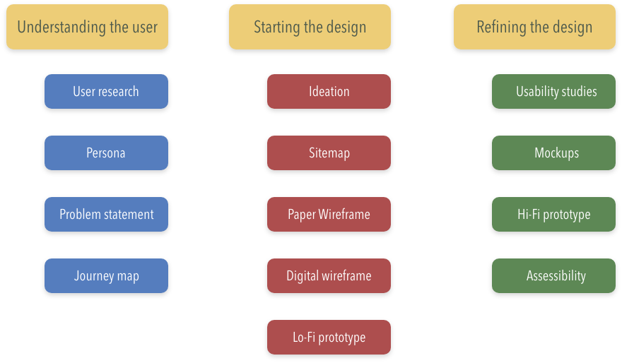 A proper design system is the key to success for any projects. This project follows the following design process.